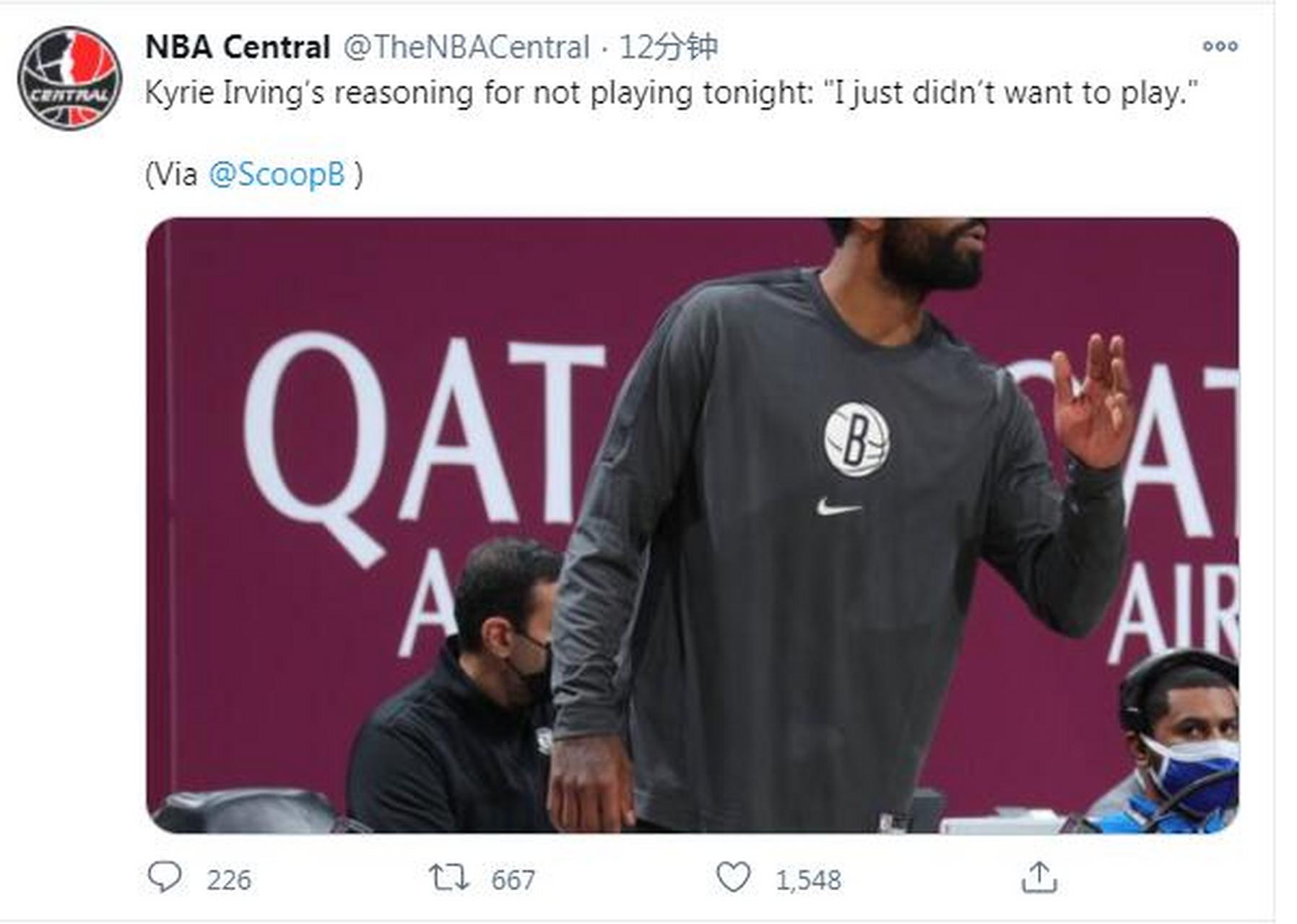 2、然而事情偏偏不是这样发展的,比赛还没有打,就传来了欧文将不参加本场比赛的消息,这一消息让所有球迷都一头雾水,这是什么情况,难道欧文又要闹幺蛾子了布鲁克林篮网队主教练史蒂夫纳什赛前告诉记者,凯里欧文因个人原因将会缺阵对阵76人的比赛具体什么原因,主教练纳什也不知道,他表示自己已经。
